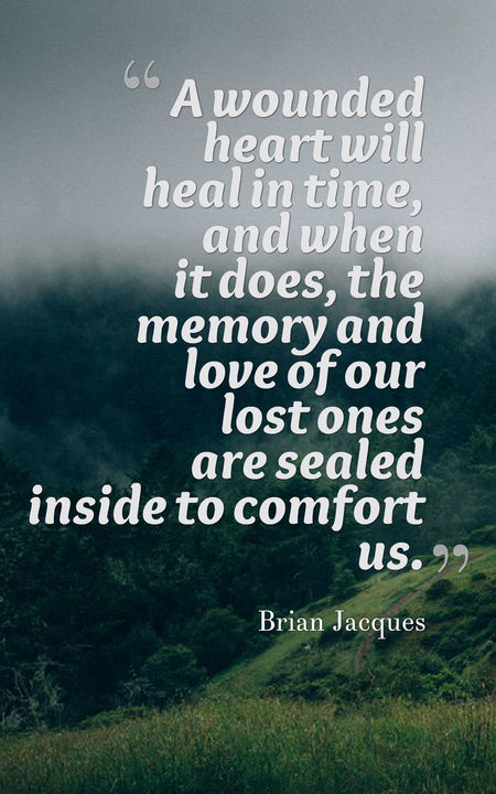 “A wounded heart will heal in time, and when it does, the memory and love of our lost ones are sealed inside to comfort us.”
