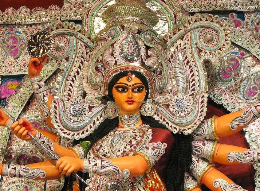Maa Durga comes in anger form of protective mother goddess to fight against wrong. She is portrayed riding lion or tiger and with many arms carrying weapon in each. The ten day Durga puja is biggest festival celebrated every year in many states of India. The tenth day victory is celebrated as Vijayadashmi/ Dussehra.